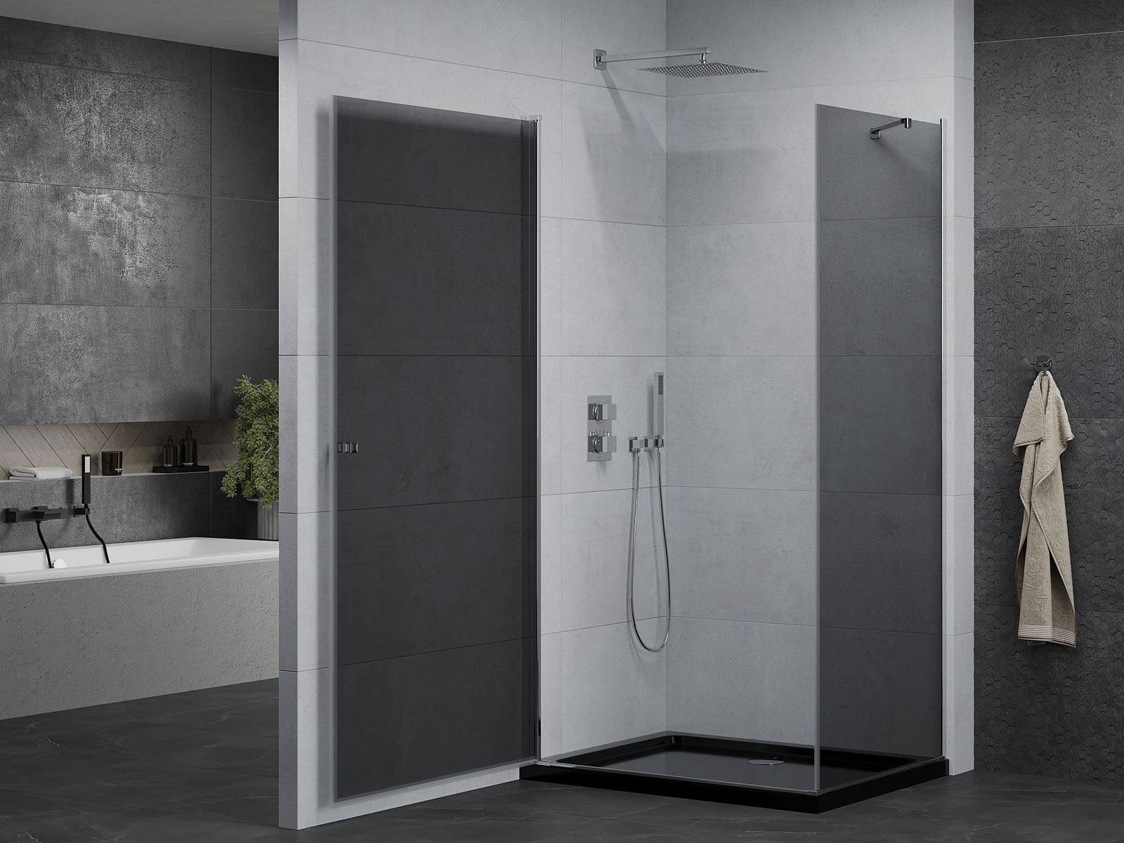 A pega prática e confortável foi feita de metal durável e resistente. A forma moderna combinada com o acabamento ajustado à cor dos perfis confere a todo o conjunto uma aparência moderna e estilosa, realçando a estética de qualquer casa de banho.