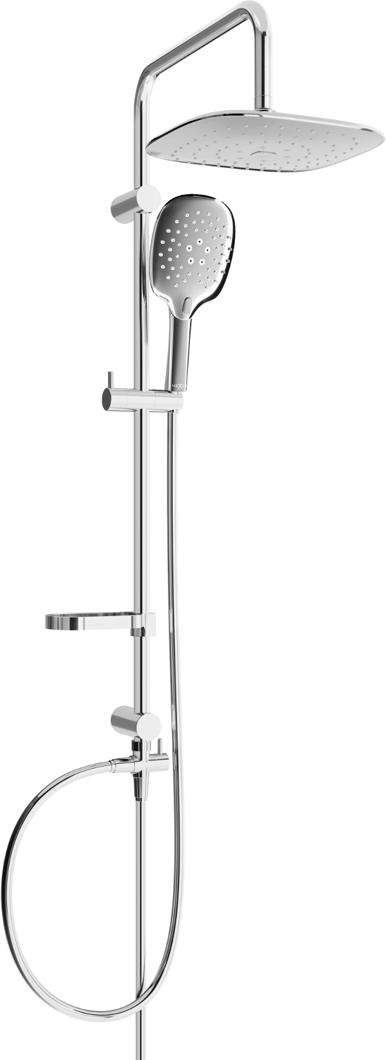 A pega do chuveiro possui três tipos de jato, alterados através de um interruptor. Oferece total liberdade e possibilidade de adaptação às necessidades do utilizador, oferecendo um jato de água suave ou mais forte e concentrado.