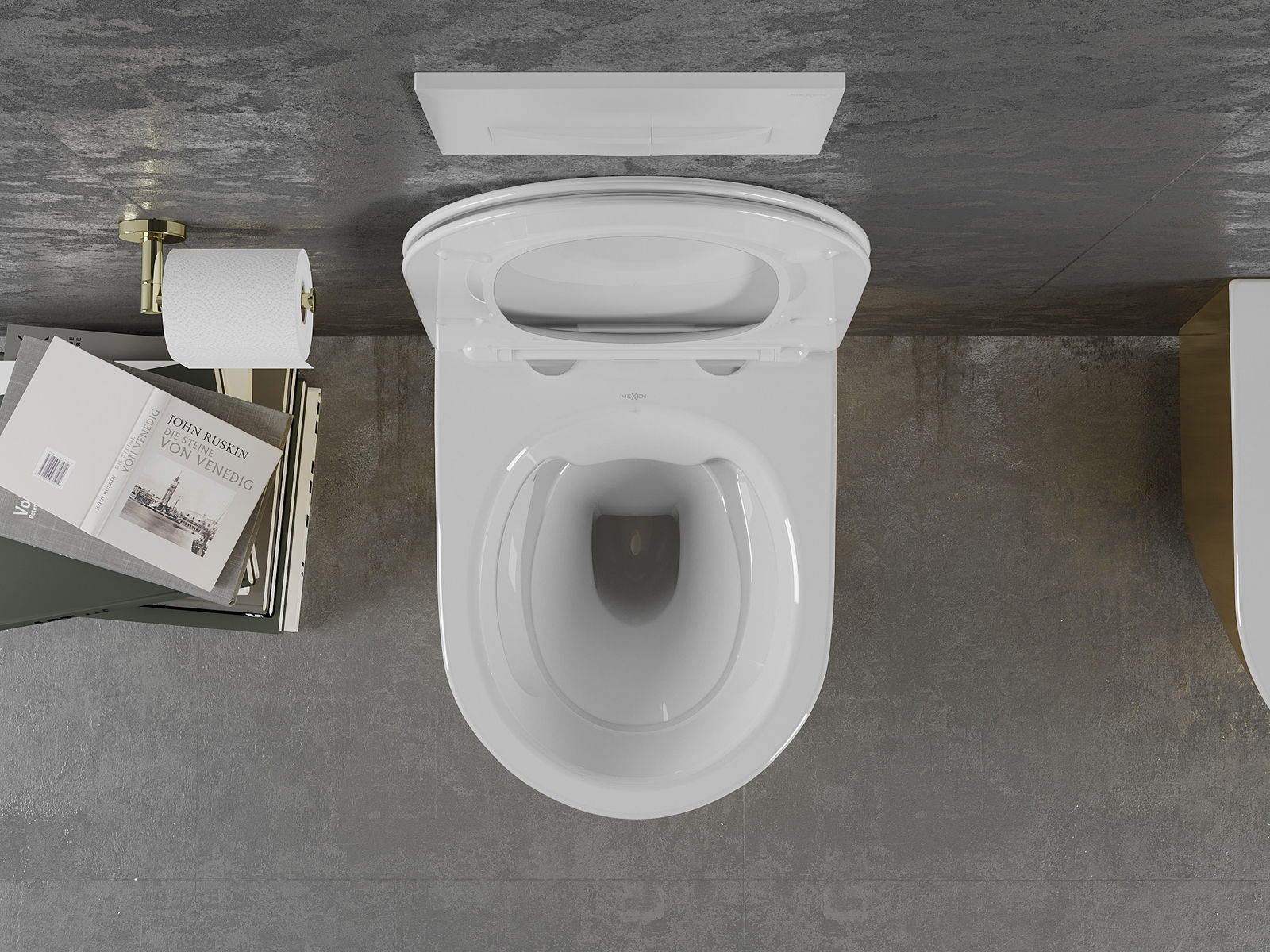Sistema moderno, no qual todos os elementos de montagem foram ocultados. Não é apenas uma solução estética, mas também muito prática. Facilita a manutenção da casa de banho limpa e assegura um aspeto arrumado.