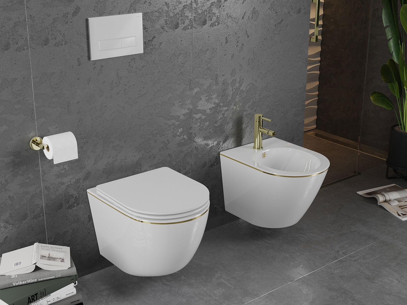 Sistema moderno, no qual todos os elementos de montagem foram ocultados. Não é apenas uma solução estética, mas também muito prática. Facilita a manutenção da casa de banho limpa e assegura um aspeto arrumado.