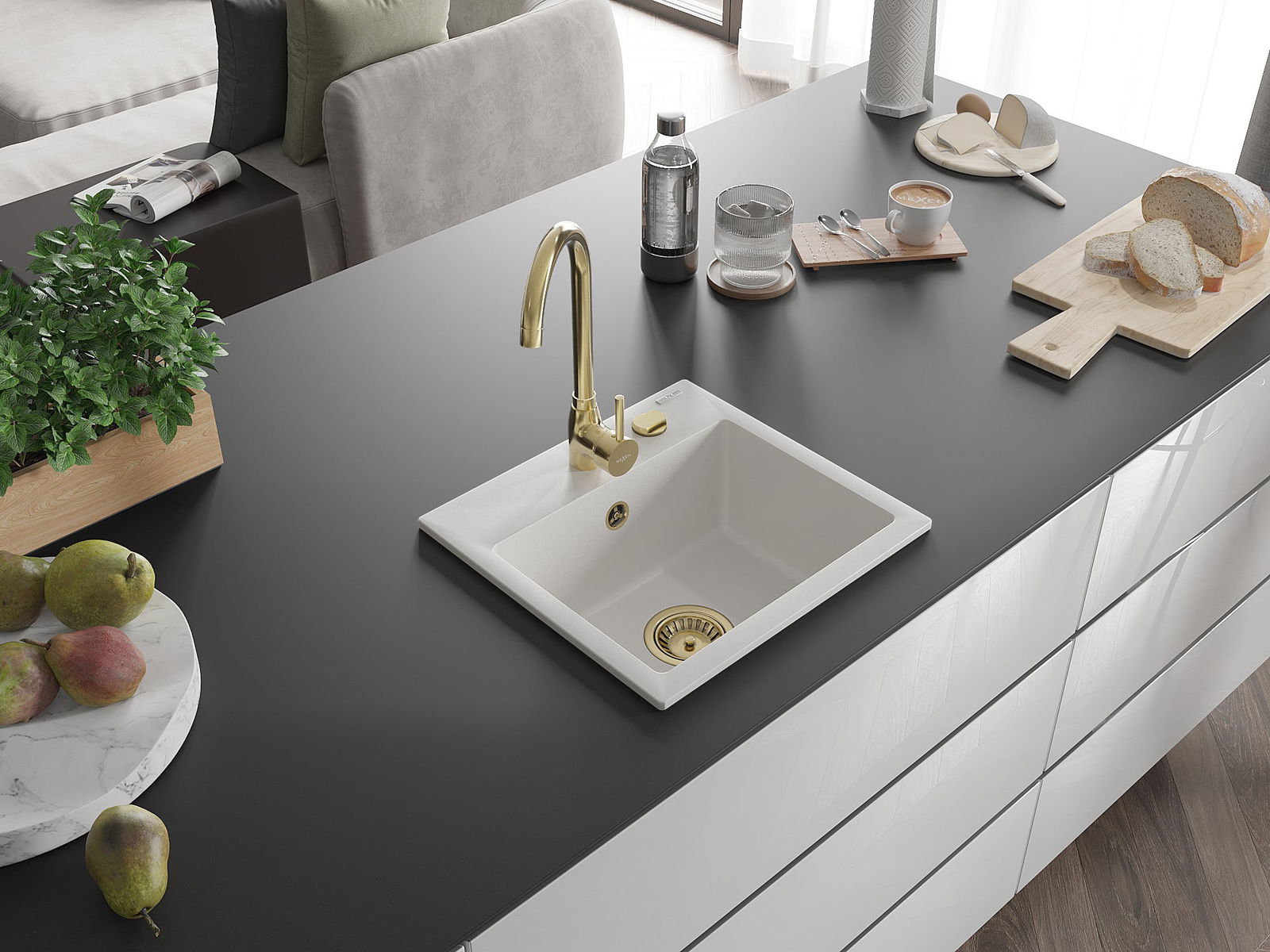 O lava-loiça é feito de granito de alta qualidade. Constitui um complemento elegante, e acima de tudo prático, para qualquer cozinha, independentemente do seu estilo. A alta qualidade e durabilidade do granito garantem muitos anos de utilização.