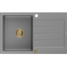 Mexen Bruno lava-louças em granito 1-cuba com escorredor 795 x 495 mm, preto salpicado, sifão dourado - 6513791010-76-G