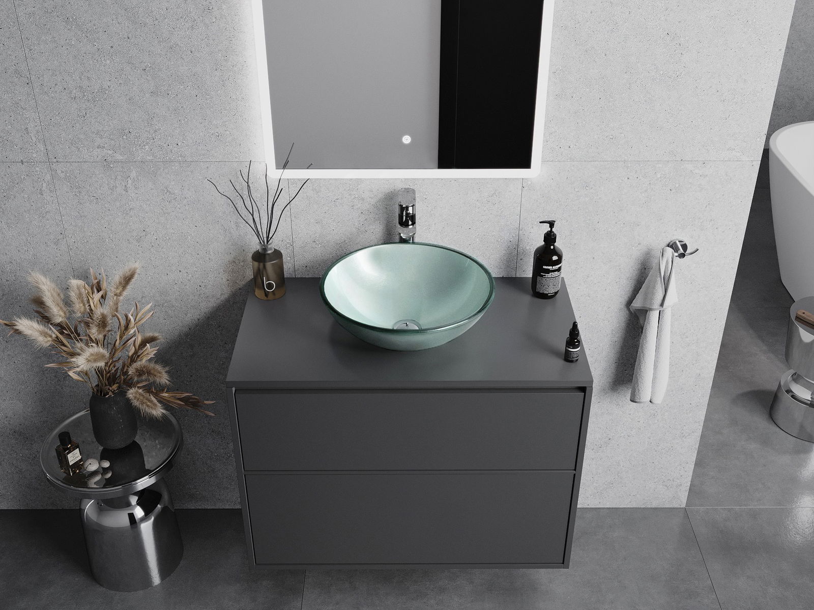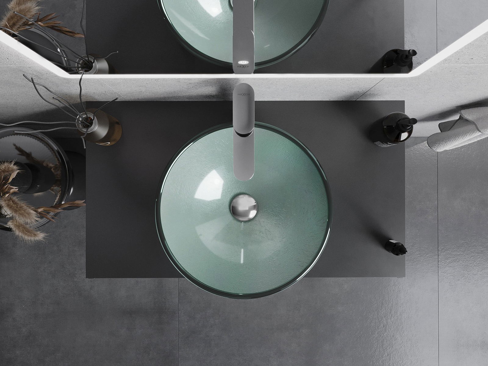 Mexen Mira lavatório de vidro de bancada 42 x 42 cm, prateado - 24124211