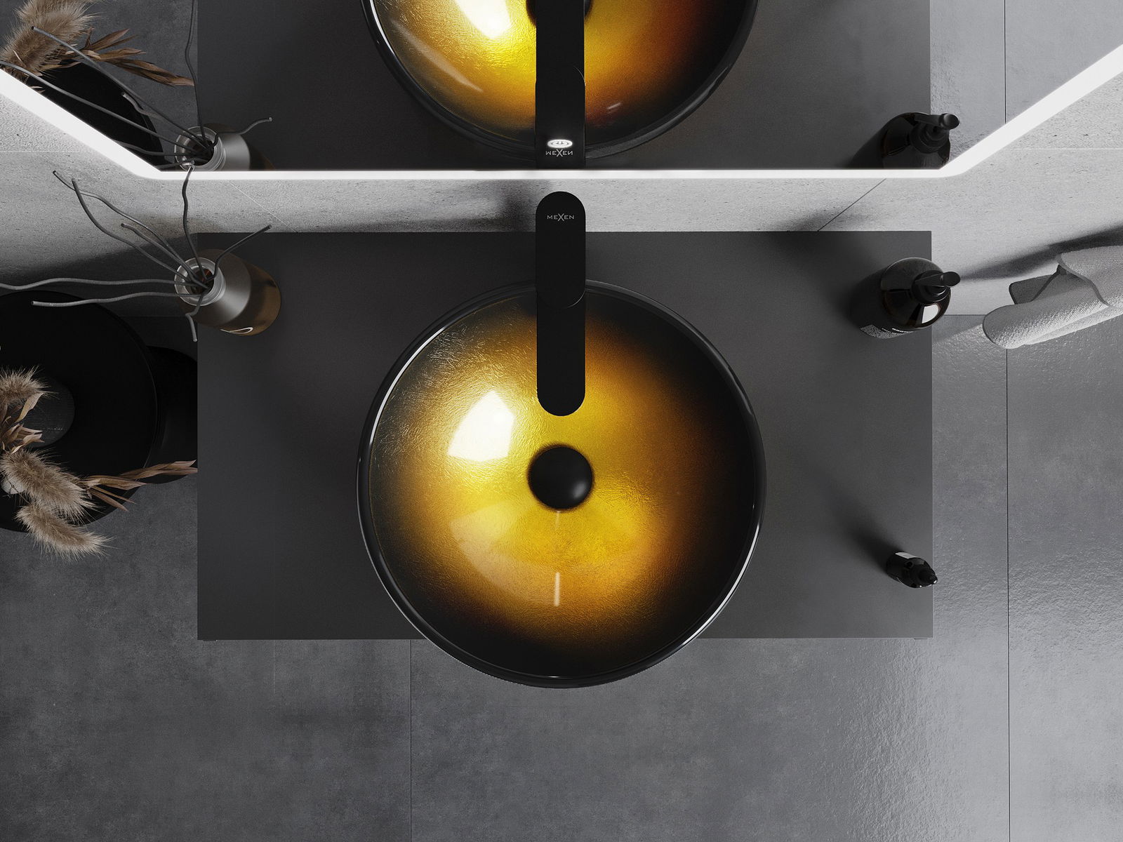 Mexen Mira lavatório de vidro de bancada 42 x 42 cm, dourado escuro - 24124251