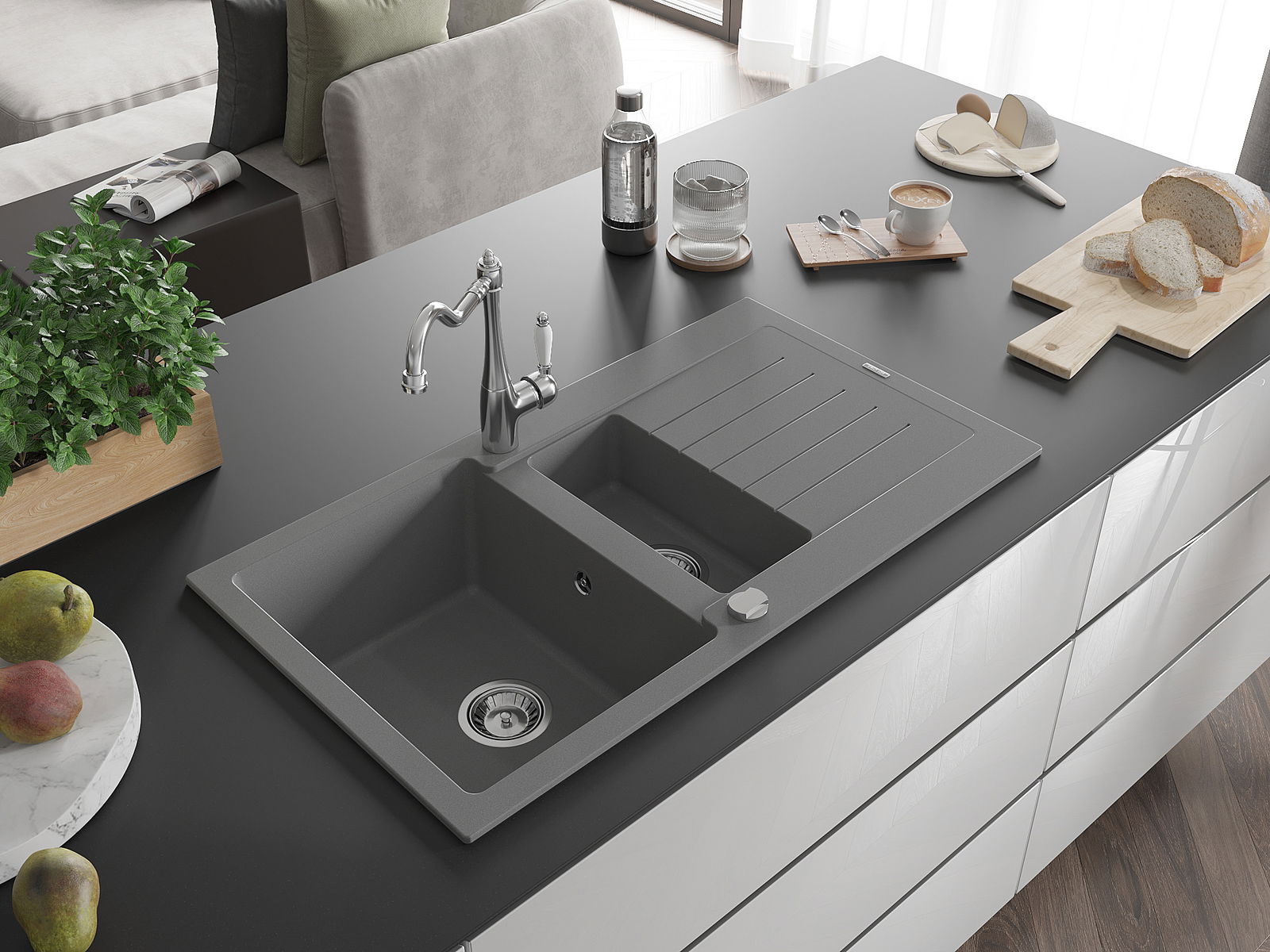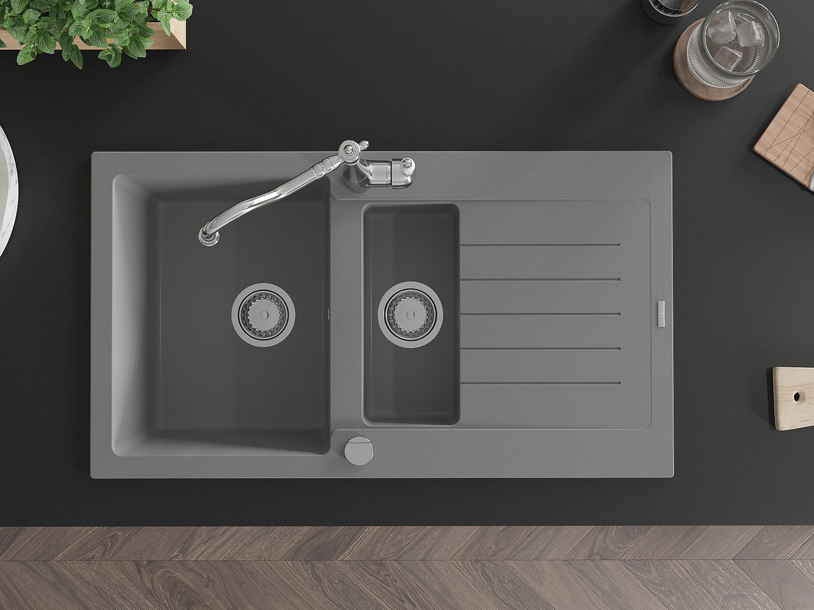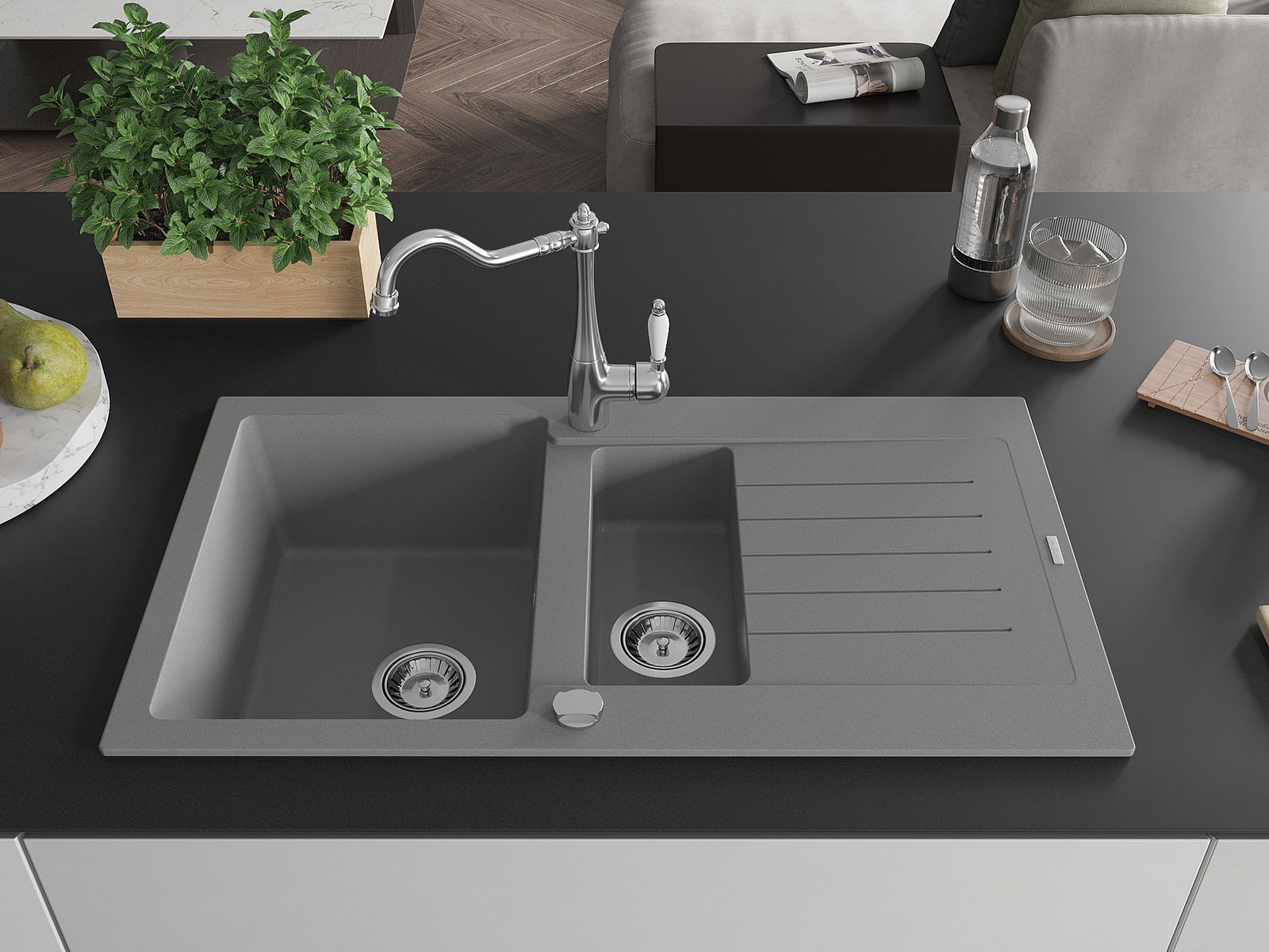 O lava-louças foi feito de granito de alta qualidade. É um complemento elegante e, acima de tudo, prático para qualquer cozinha, independentemente do seu estilo. A alta qualidade e durabilidade do granito garantem uma utilização de muitos anos.