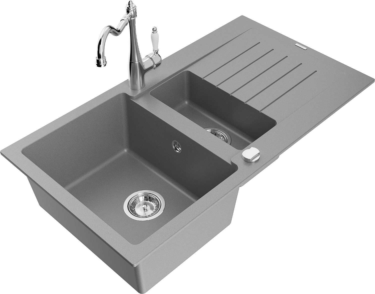 Mexen Matias lava-loiça de granito com 1,5 compartimentos com escorredor e torneira de cozinha Carla, cinzento