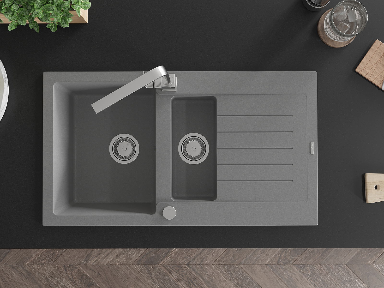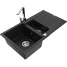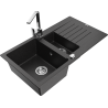 Mexen Matias lava-loiça em granito 1,5 bacia com escorredor e torneira de cozinha Rita, cinza - 6502-71-670300-00