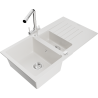 Mexen Matias lava-louça de granito 1,5-cubas com escorredor e torneira de cozinha Duero, bege - 6502-69-671600-00