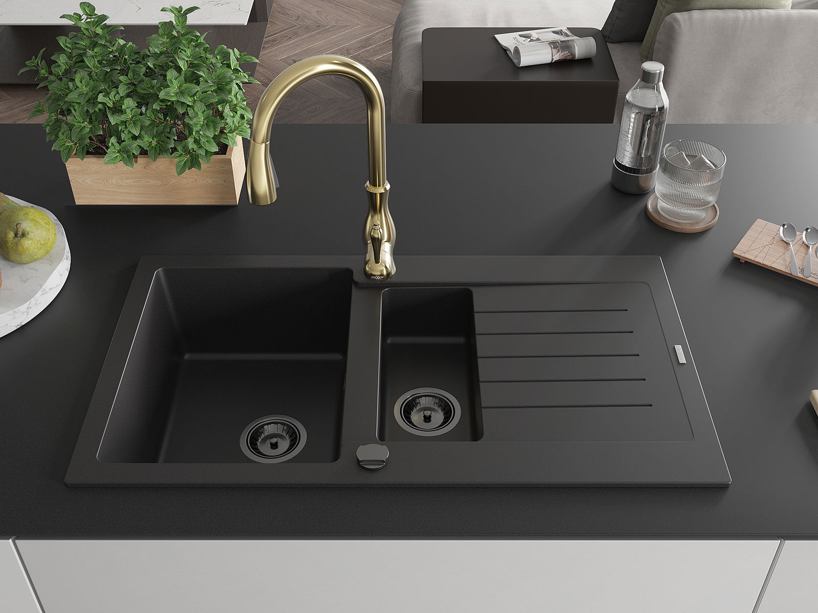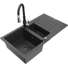 Mexen Matias lava-loiça de granito de 1,5 compartimentos com escorredor e torneira de cozinha Savita, preto