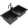 Mexen Mario lava-louça de granito de 2 cubas com torneira de cozinha Carla, bege - 6504-69-670700-70