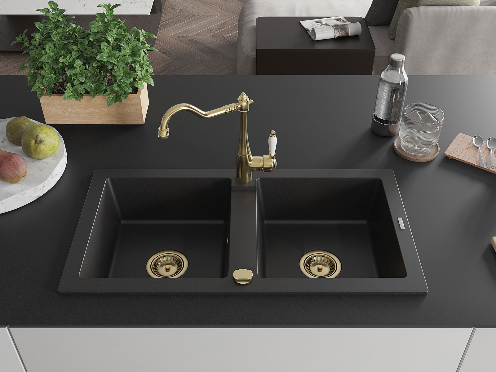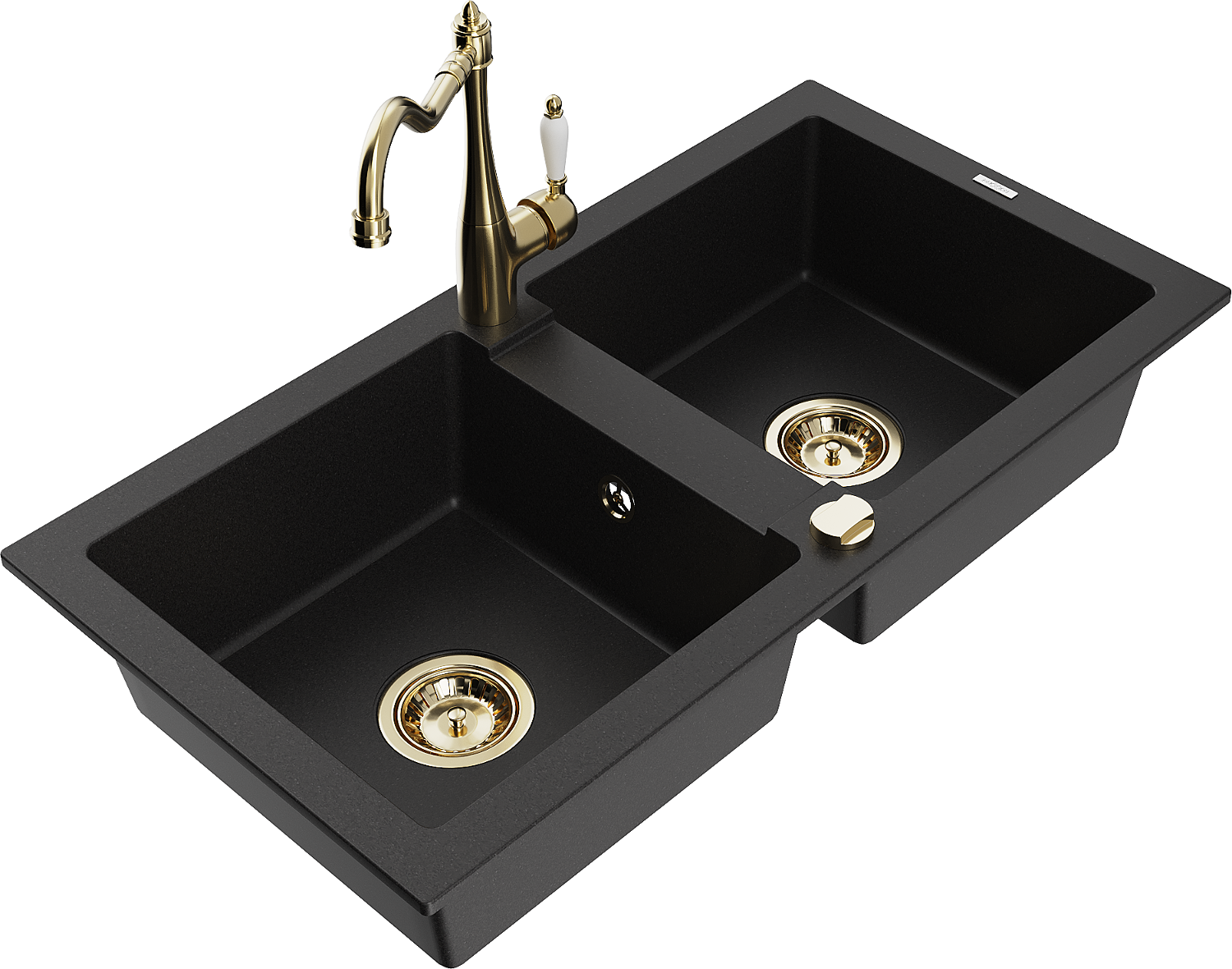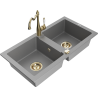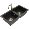 Mexen Mario lava-loiça de granito 2 cubas com torneira de cozinha Carla, preto - 6504-77-670700-50