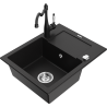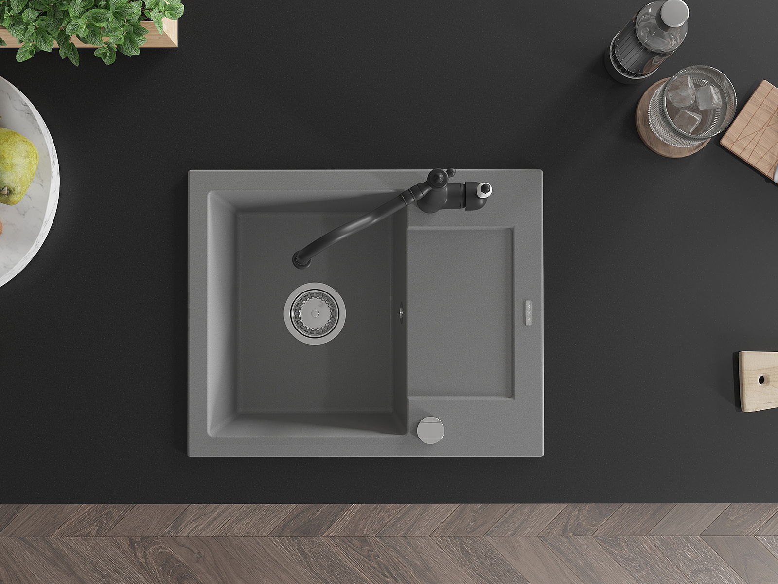 Mexen Enzo lava-loiça de granito 1-cuba com escorredor e torneira de cozinha Carla, cinzento - 6506-71-670700-70