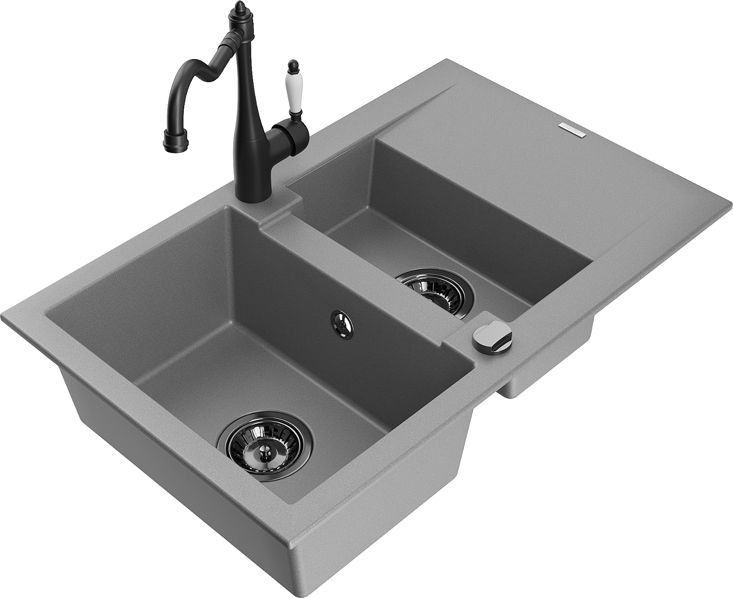 Mexen Gaspar lava-louça de granito com 1,5 compartimentos com escorredor e torneira de cozinha Carla, cinza