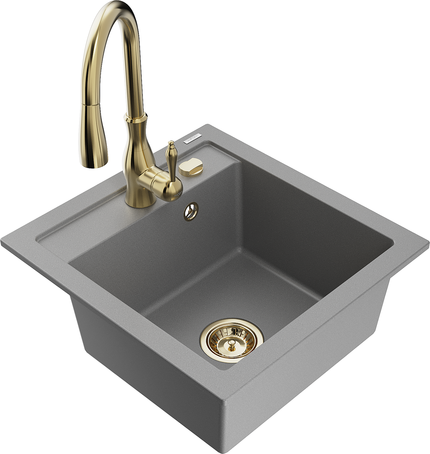 Mexen Vito lava-loiça de granito 1-bacia com torneira de cozinha Savita, cinza - 6503-71-672601-50