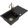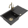 Mexen Pablo lava-louça de granito 1-cuba com escorredor e torneira de cozinha Carla, bege - 6510-69-670700-50