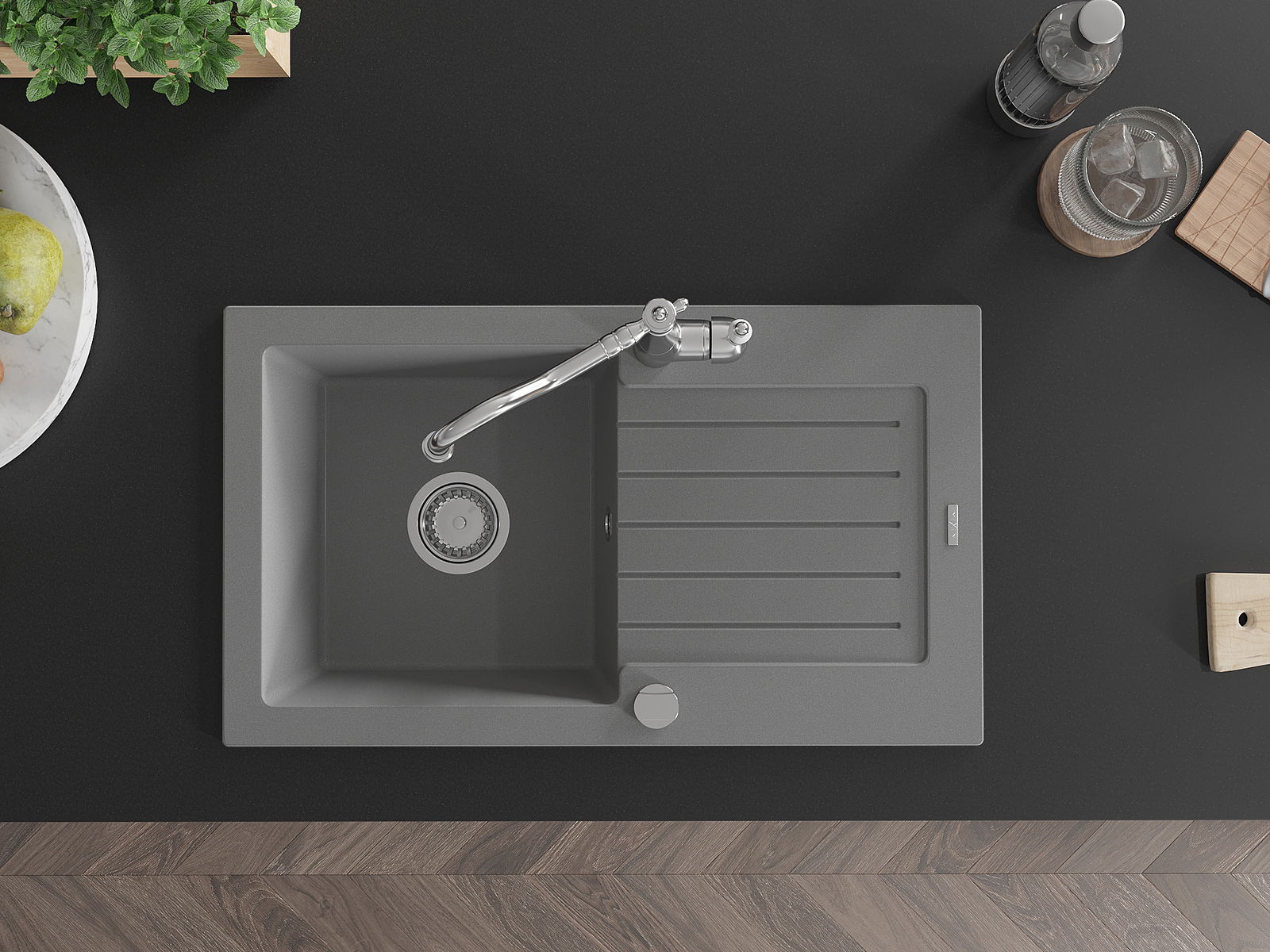 Mexen Pablo lava-loiça de granito com 1 cuba com escorredor e torneira de cozinha Carla, cinzento - 6510-71-670700-00