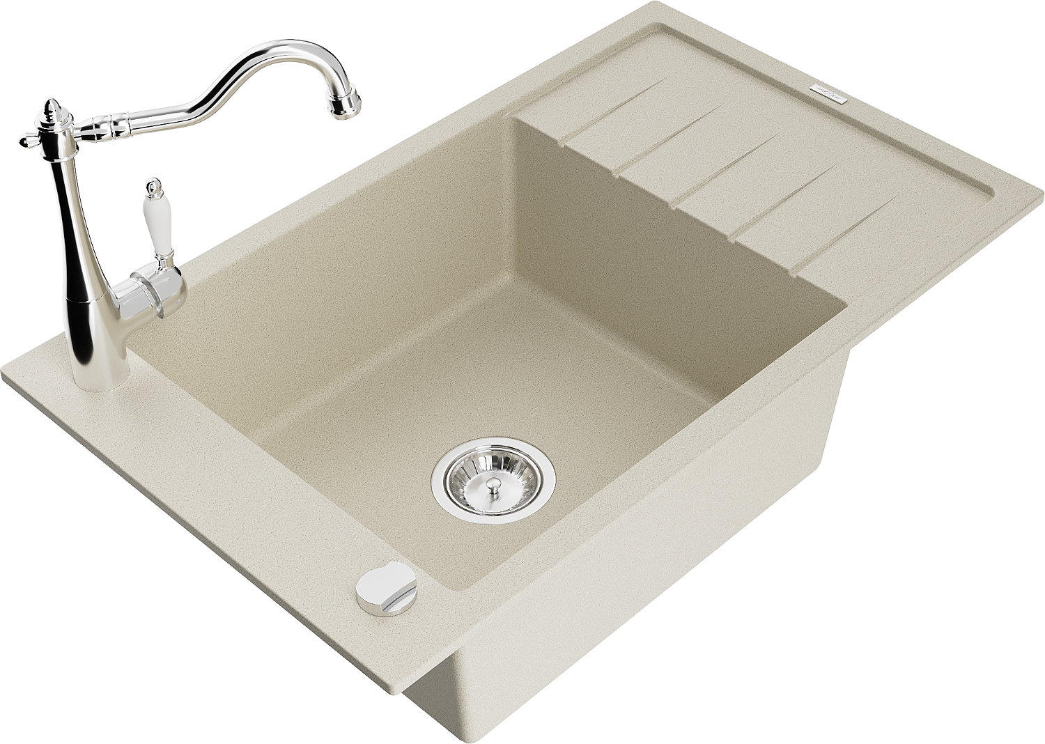 Mexen Elias lava-loiça de granito com 1 bacia com escorredor e torneira de cozinha Carla, bege - 6511-69-670700-00