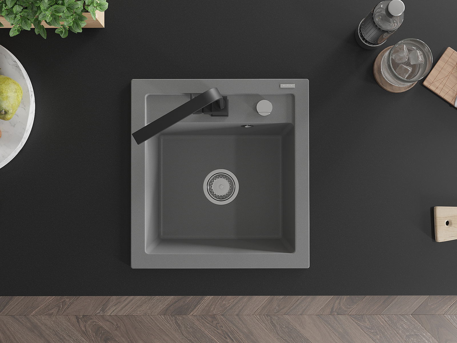 Mexen Vito lava-loiça de granito com 1 cuba e torneira de cozinha Rita, cinza - 6503-71-670300-70