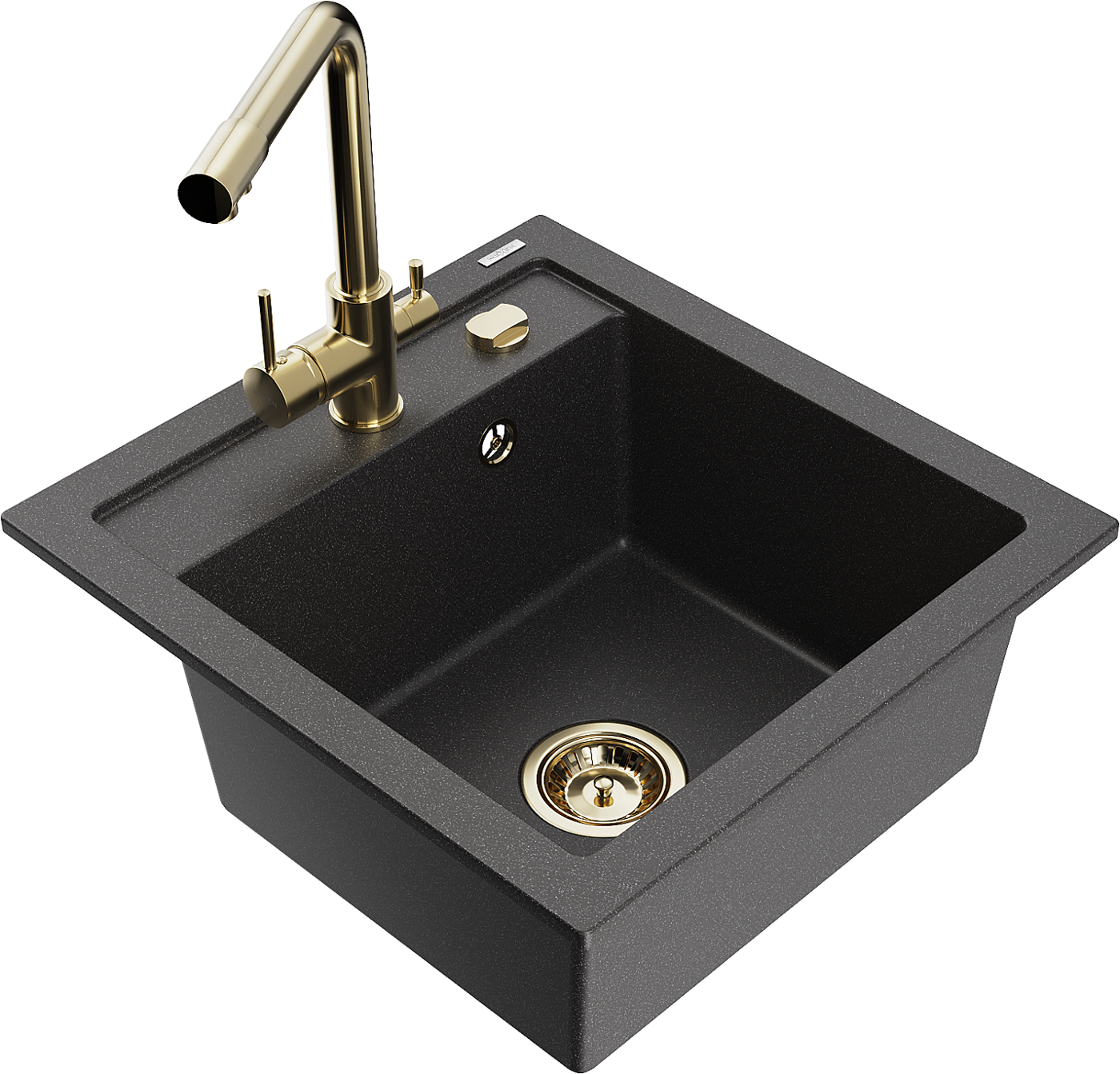 Mexen Vito lava-loiça de granito de 1 bacia com torneira de cozinha Duero, preto salpicado - 6503-76-671600-50