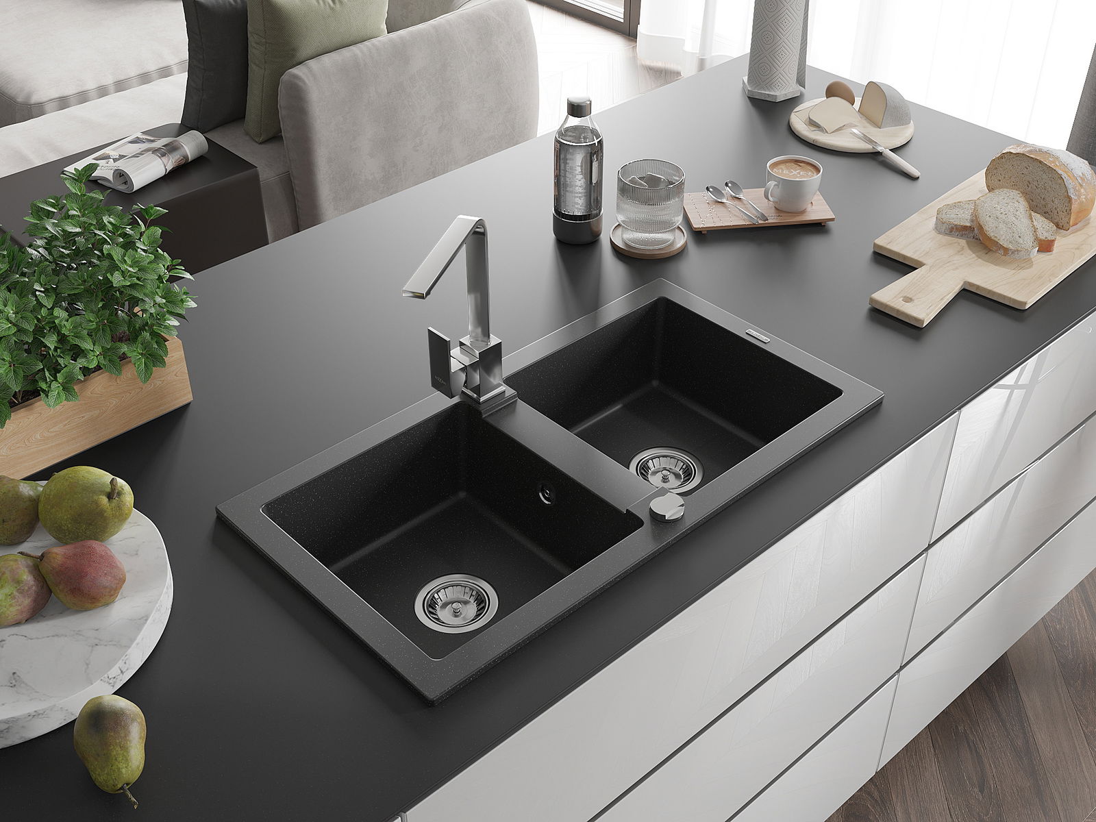 O lava-loiça é feito de granito de alta qualidade. Constitui um complemento elegante, e acima de tudo prático, para qualquer cozinha, independentemente do seu estilo. A alta qualidade e durabilidade do granito garantem muitos anos de utilização.
