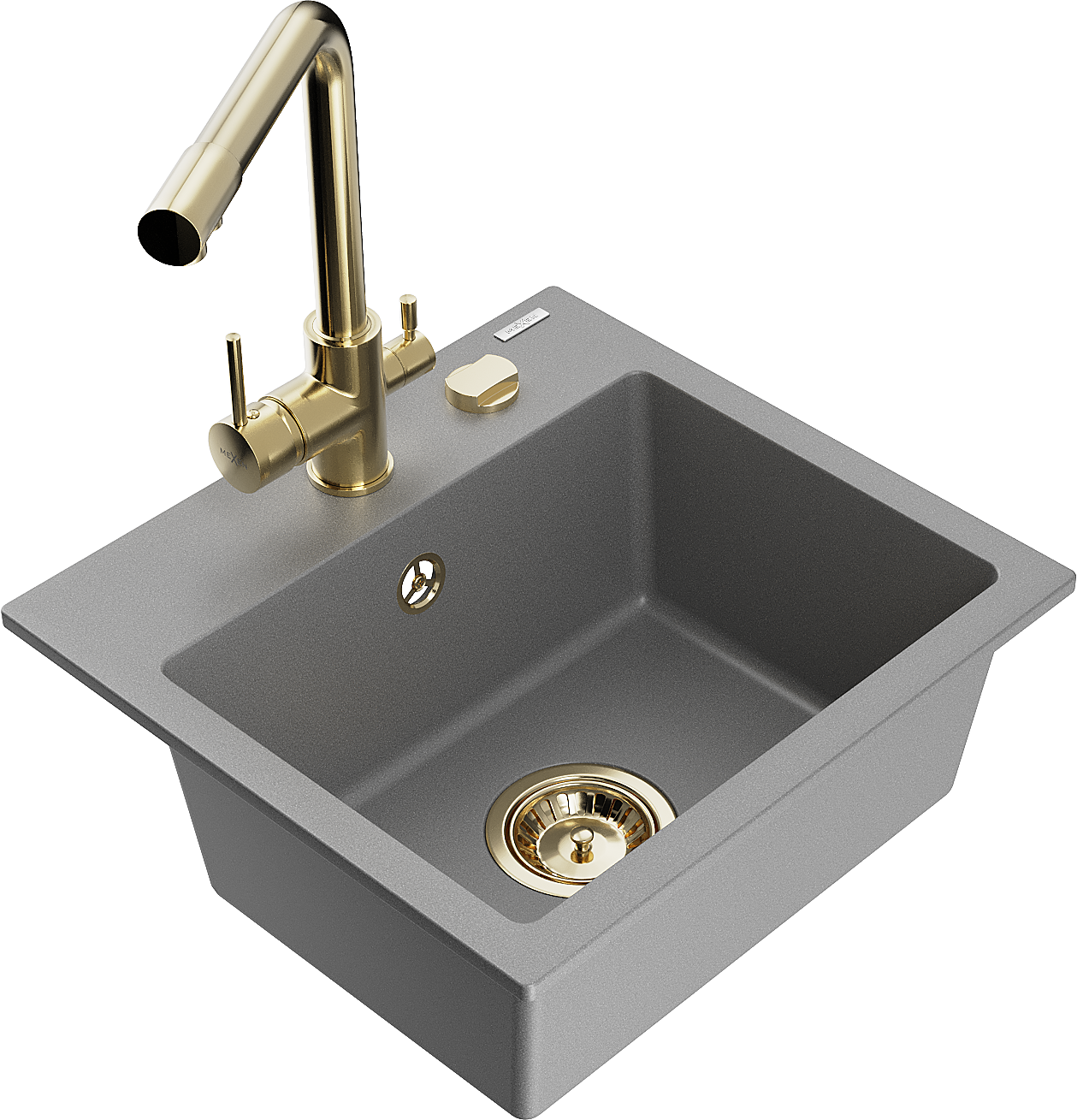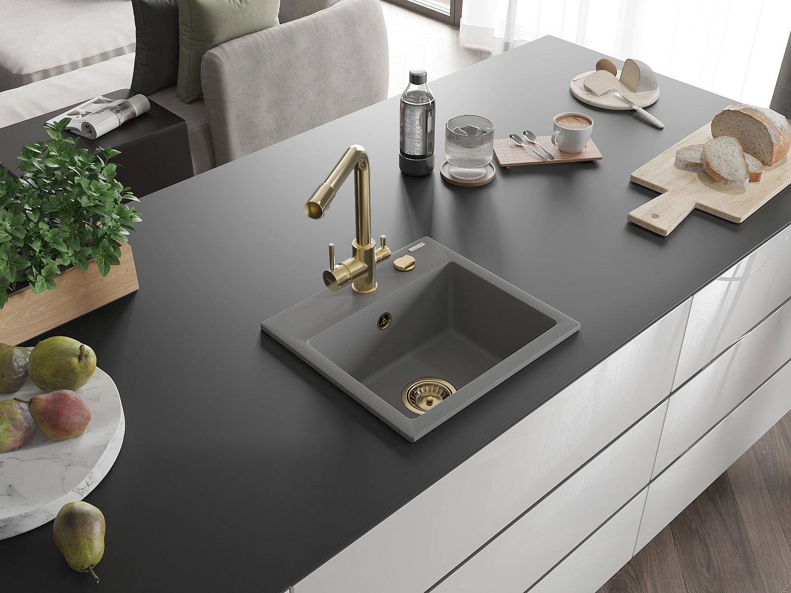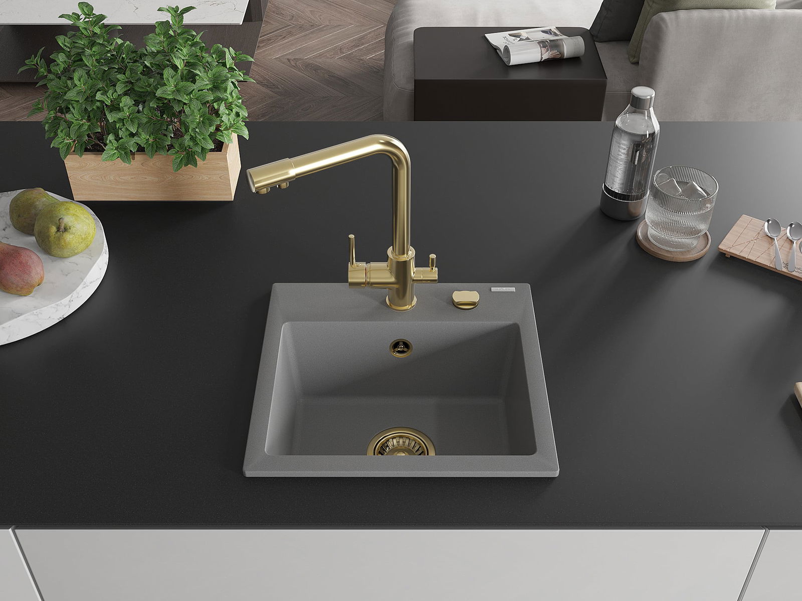 Mexen Milo lava-loiça de granito de uma bacia com torneira de cozinha Duero, cinza - 6505-71-671600-50