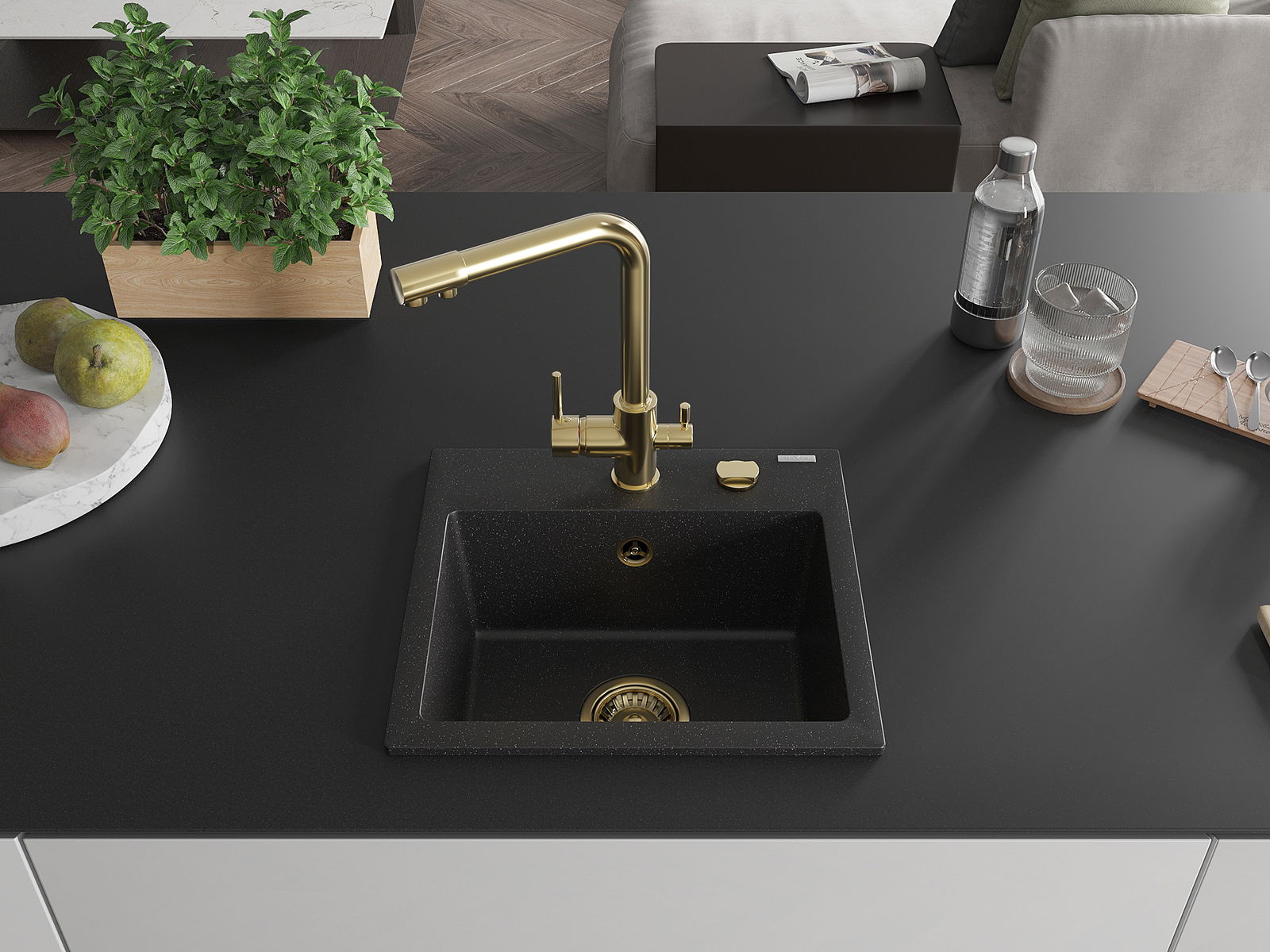O lava-loiça é feito de granito de alta qualidade. Constitui um complemento elegante, e acima de tudo prático, para qualquer cozinha, independentemente do seu estilo. A alta qualidade e durabilidade do granito garantem muitos anos de utilização.