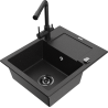 Mexen Enzo lava-louça de granito de uma bacia com escorredor e torneira de cozinha Duero, cinza - 6506-71-671600-70-B