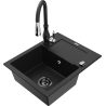 Mexen Enzo lava-louça de granito 1-cuba com escorredor e torneira de cozinha Savita, cinza - 6506-71-672601-70-B