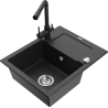 Mexen Enzo lava-loiça de granito com 1 cuba com escorredor e torneira de cozinha Duero, preto salpicado - 6506-76-671600-70