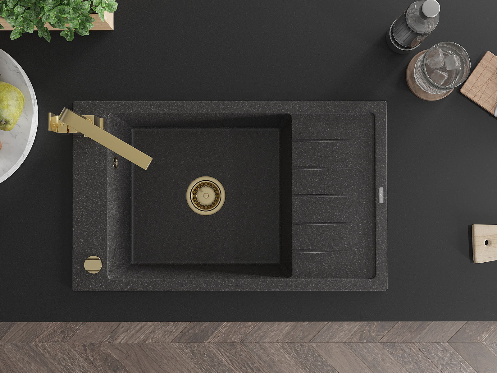 Mexen Elias lava-louça de granito com 1 cuba e escorredor e torneira de cozinha Rita, preto salpicado - 6511-76-670300-50