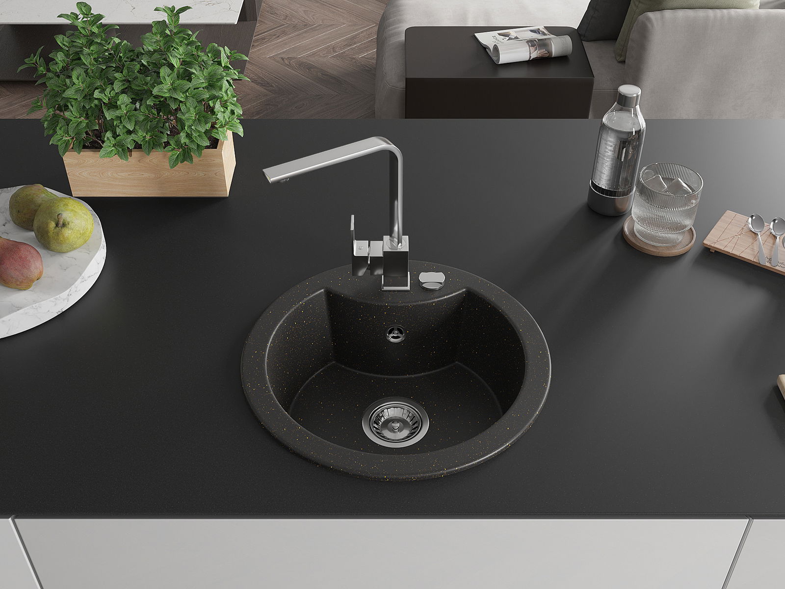 O lava-louças foi feito de granito de alta qualidade. É um complemento elegante e, acima de tudo, prático para qualquer cozinha, independentemente do seu estilo. A alta qualidade e durabilidade do granito garantem uma utilização de muitos anos.
