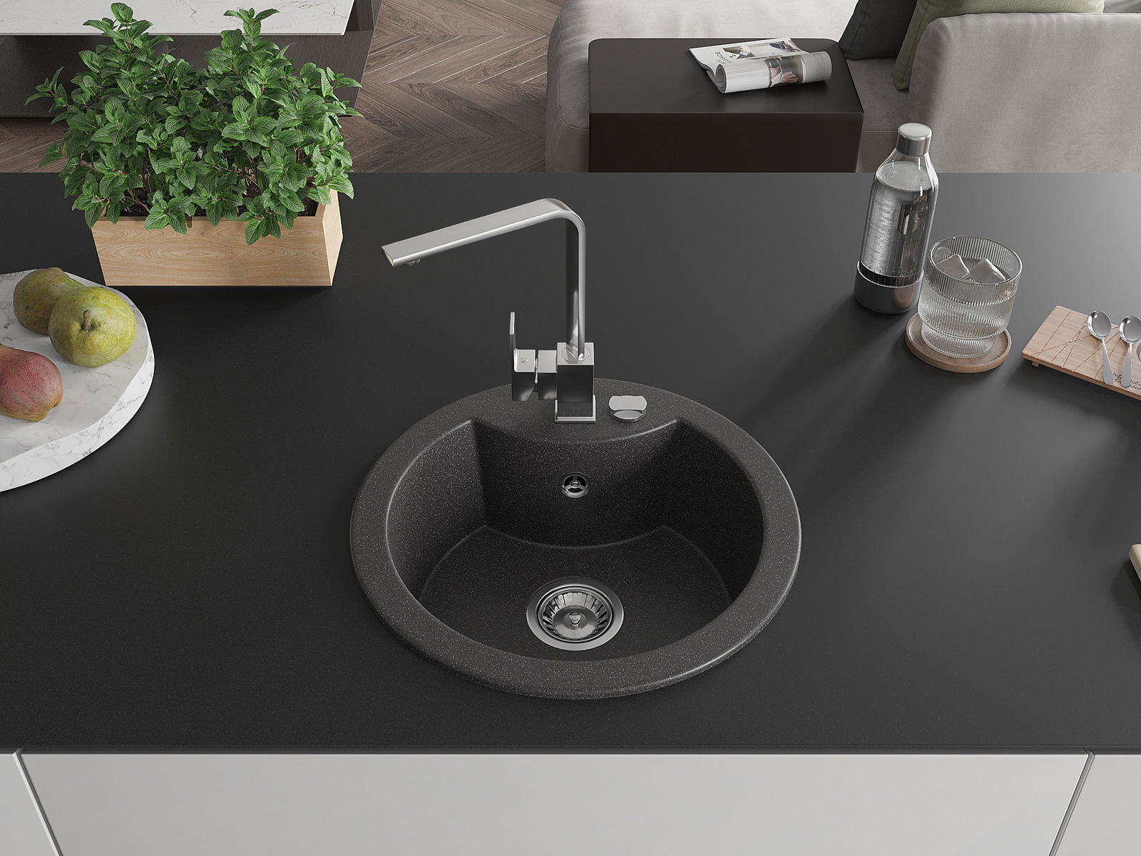 O lava-loiça é feito de granito de alta qualidade. Constitui um complemento elegante, e acima de tudo prático, para qualquer cozinha, independentemente do seu estilo. A alta qualidade e durabilidade do granito garantem muitos anos de utilização.