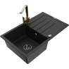 Mexen Bruno lava-louça de granito com 1 cuba e escorredor e torneira de cozinha Rita, preto/dourado metálico