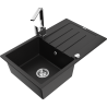 Mexen Bruno lava-loiça de granito de 1-cuba com escorredor e torneira de cozinha Rita, preto salpicado - 6513-76-670300-76