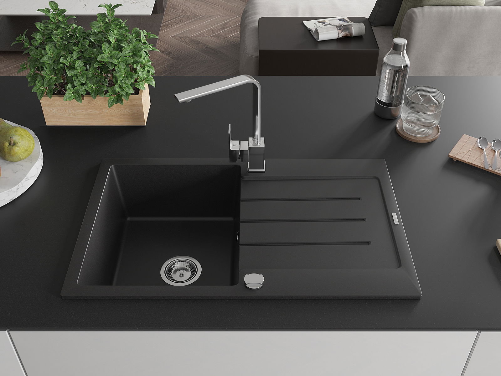 O lava-louças foi feito de granito de alta qualidade. É um complemento elegante e, acima de tudo, prático para qualquer cozinha, independentemente do seu estilo. A alta qualidade e durabilidade do granito garantem uma utilização de muitos anos.