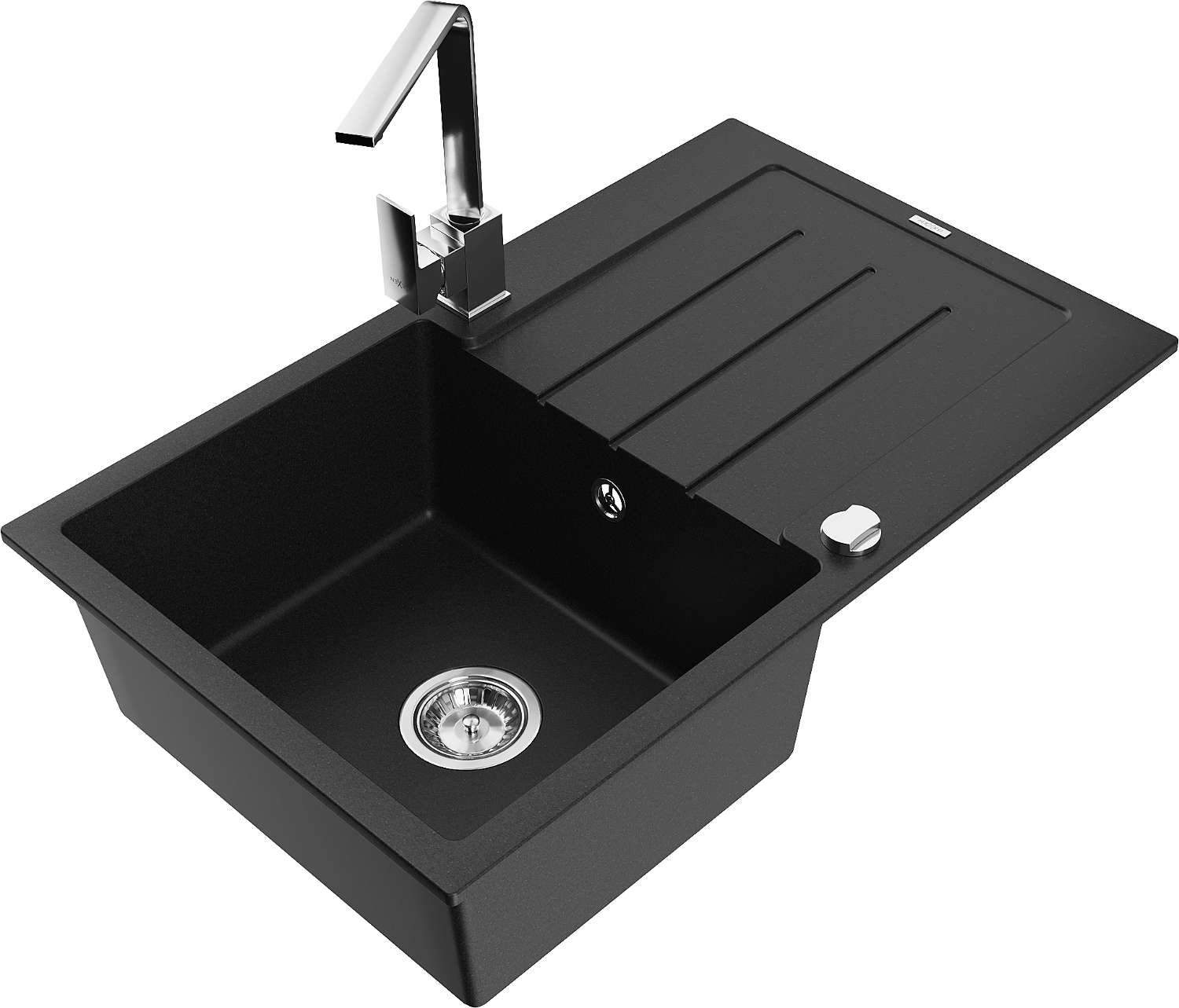 Mexen Bruno lava-loiça de granito 1-com cavidade com escorredor e torneira de cozinha Rita, preto - 6513-77-670300-00