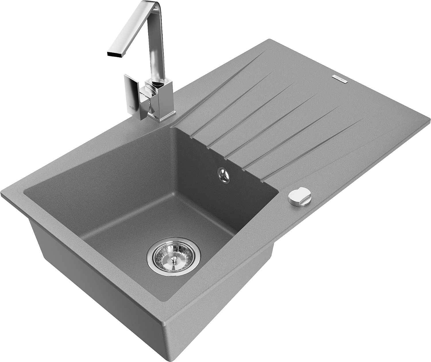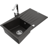 Mexen Cesar lava-loiça de granito com 1 cuba com escorredor e torneira de cozinha Rita, cinzento - 6514-71-670300-00