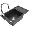 Mexen Elias lava-loiça de granito de 1 cuba com escorredor e torneira de cozinha Savita, cinzento - 6511-71-672601-00