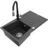 Mexen Cesar lava-louça de granito com 1 cuba com escorredor e torneira de cozinha Savita, preto/dourado metálico