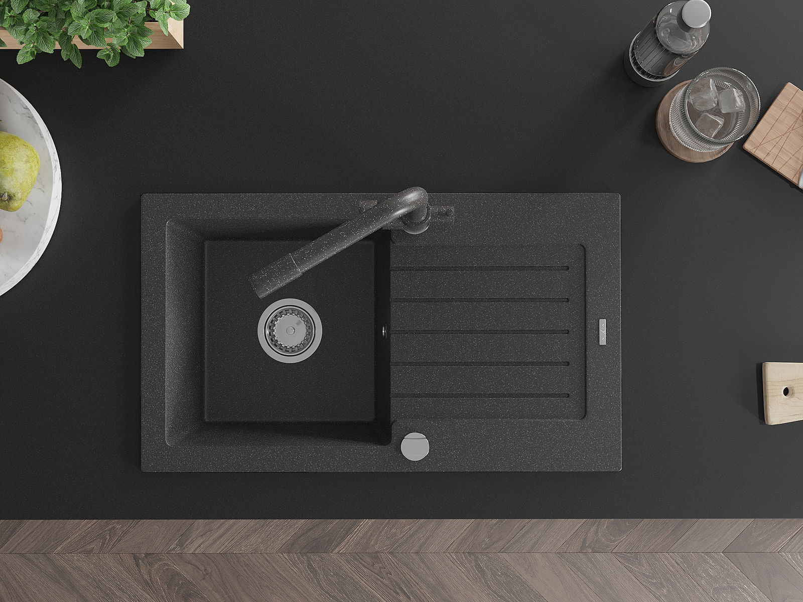 O lava-loiça é feito de granito de alta qualidade. Constitui um complemento elegante, e acima de tudo prático, para qualquer cozinha, independentemente do seu estilo. A alta qualidade e durabilidade do granito garantem muitos anos de utilização.