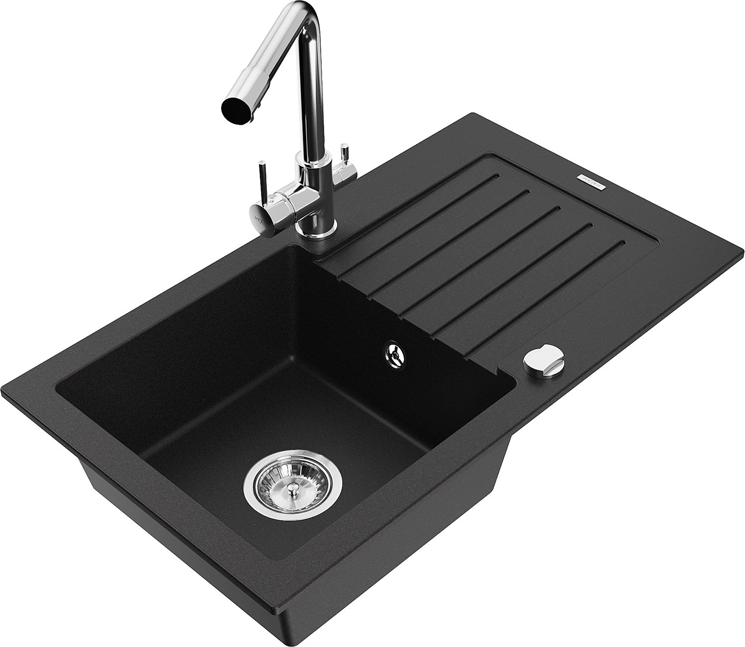 Mexen Pablo lava-loiça em granito de 1 bacia com escorredor e torneira de cozinha Duero, preto - 6510-77-671600-00