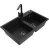 Mexen Tomas lava-louça de granito de 2 cubas com torneira de cozinha Rita, preto/dourado metálico - 6516-75-670300-70-B