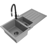 Mexen Andres lava-louça de granito de 1,5 cubas com escorredor e torneira de cozinha Savita, preto/prateado