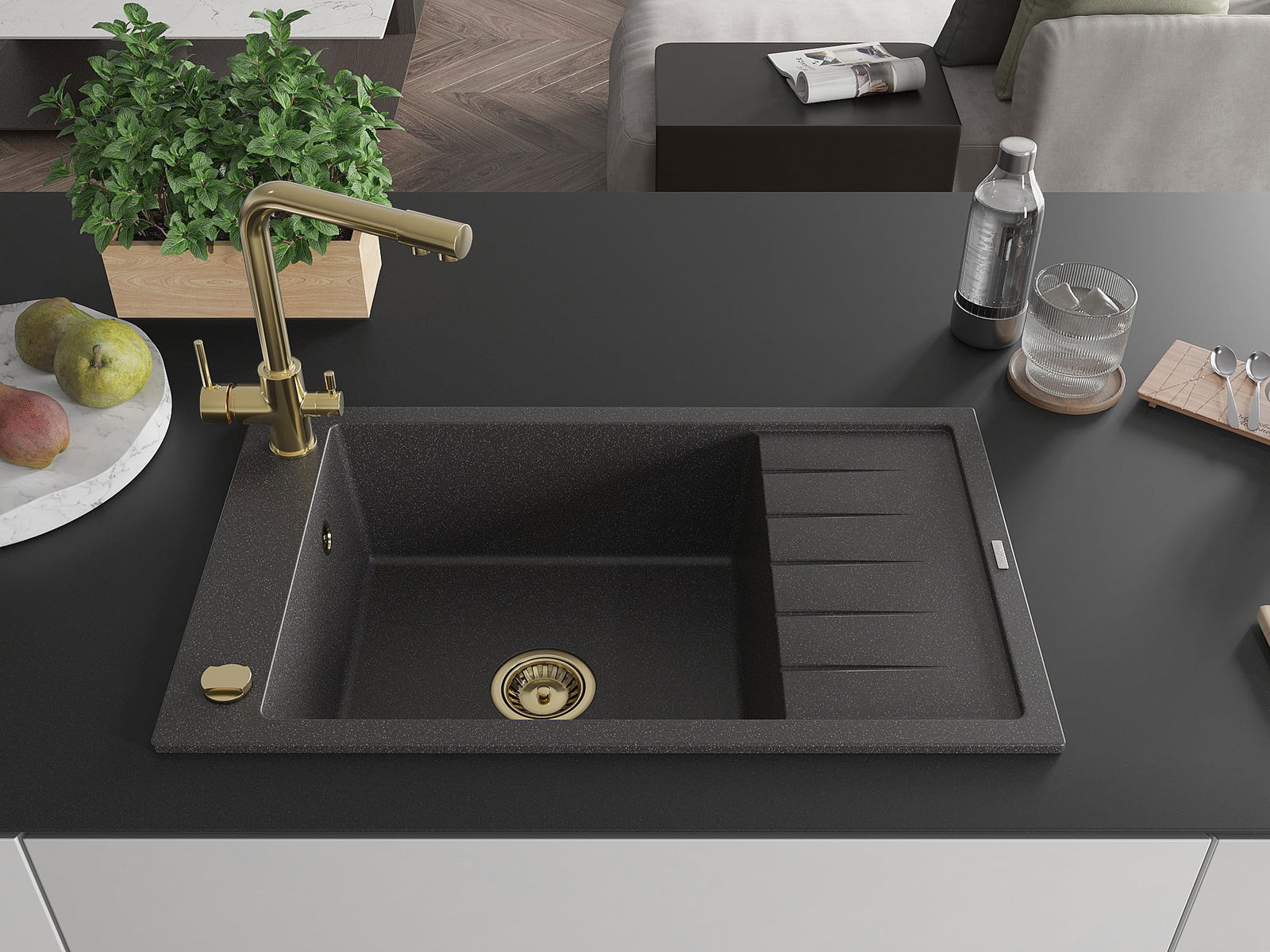 O lava-loiça é feito de granito de alta qualidade. Constitui um complemento elegante, e acima de tudo prático, para qualquer cozinha, independentemente do seu estilo. A alta qualidade e durabilidade do granito garantem muitos anos de utilização.