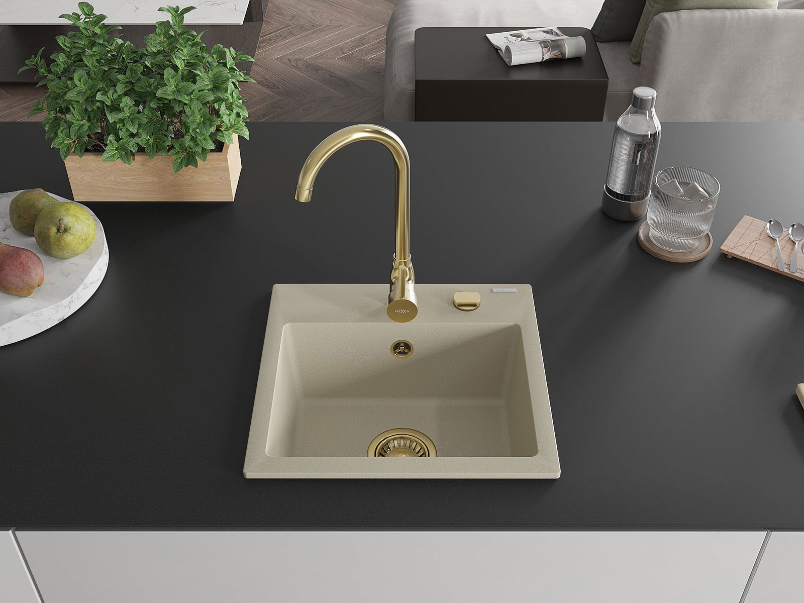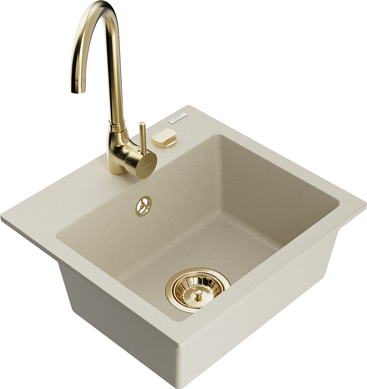 Mexen Milo lava-louça de granito de 1 cuba com torneira de cozinha Telma, bege - 6505-69-670200-50