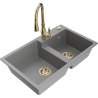 Mexen Tomas lava-louça em granito de 2 cubas com torneira de cozinha Savita, preto/dourado metálico - 6516-75-672601-50