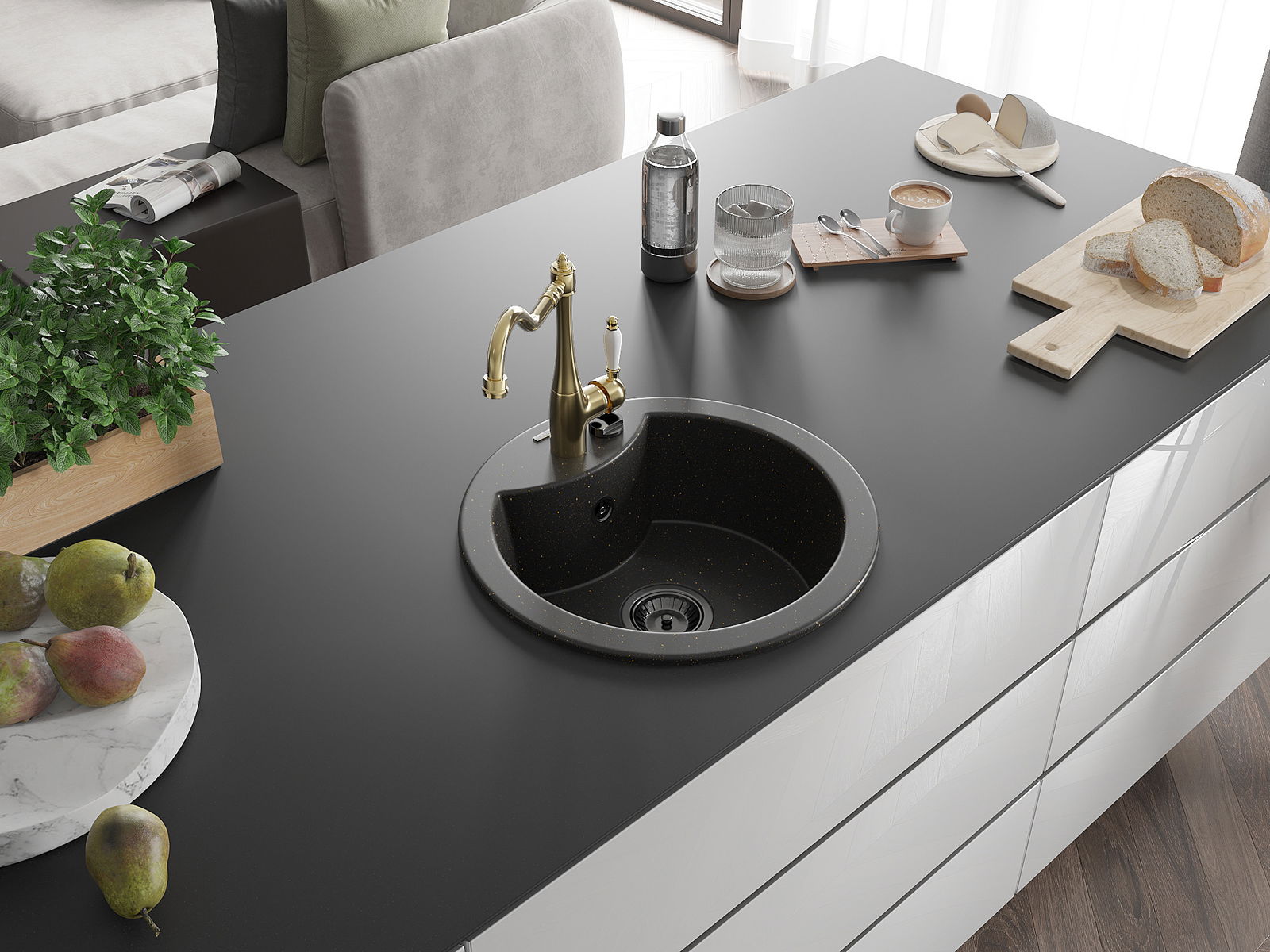 O lava-loiça é feito de granito de alta qualidade. Constitui um complemento elegante, e acima de tudo prático, para qualquer cozinha, independentemente do seu estilo. A alta qualidade e durabilidade do granito garantem muitos anos de utilização.