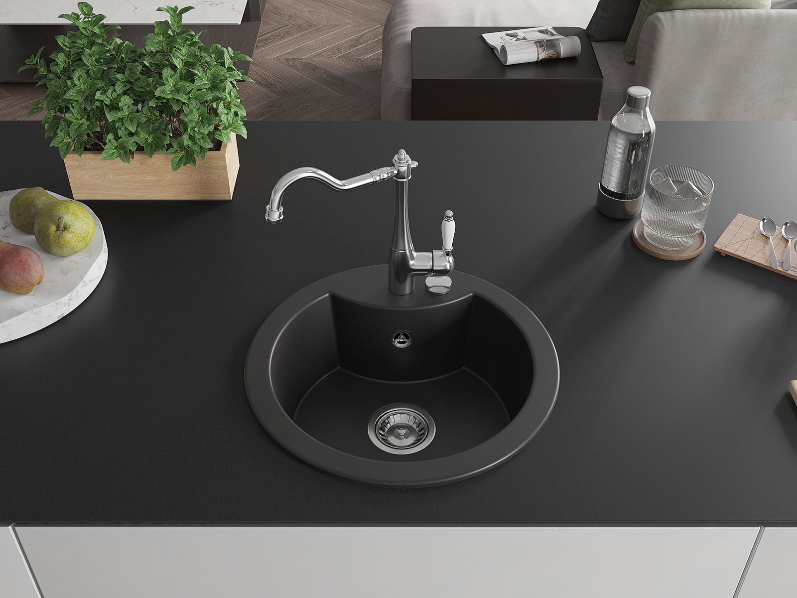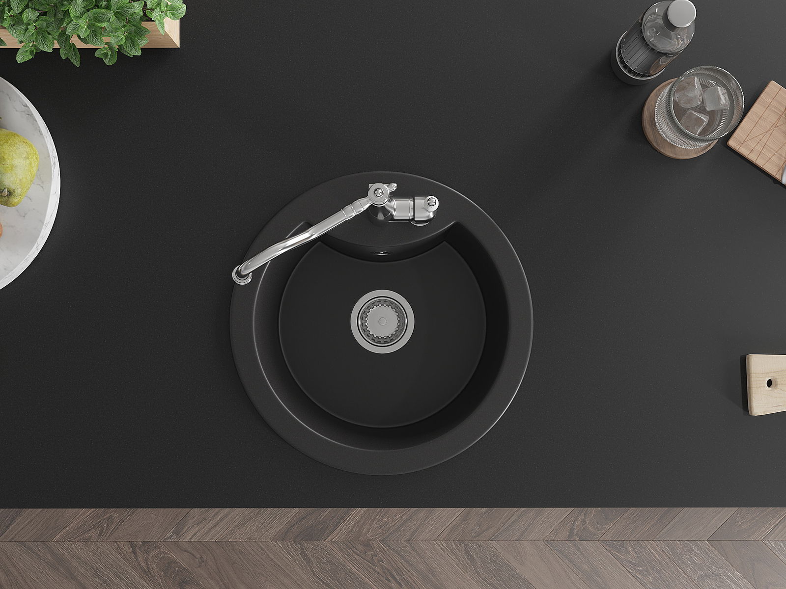 O lava-loiça é feito de granito de alta qualidade. Constitui um complemento elegante, e acima de tudo prático, para qualquer cozinha, independentemente do seu estilo. A alta qualidade e durabilidade do granito garantem muitos anos de utilização.