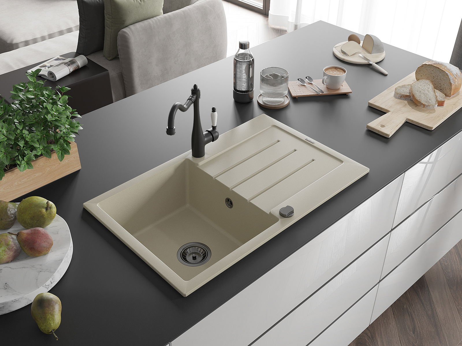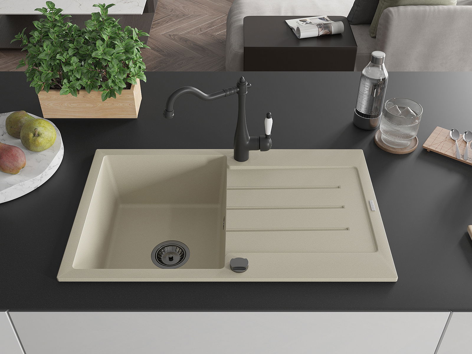 O lava-louças foi feito de granito de alta qualidade. É um complemento elegante e, acima de tudo, prático para qualquer cozinha, independentemente do seu estilo. A alta qualidade e durabilidade do granito garantem uma utilização de muitos anos.