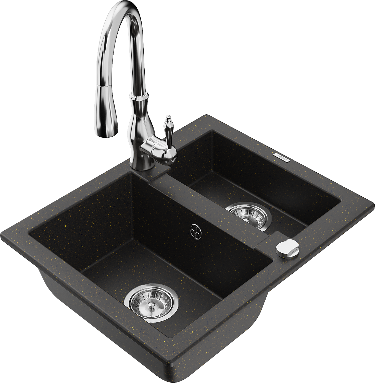Mexen Carlos lava-loiça de granito com 1,5 compartimento com torneira de cozinha Savita, preto/dourado metálico